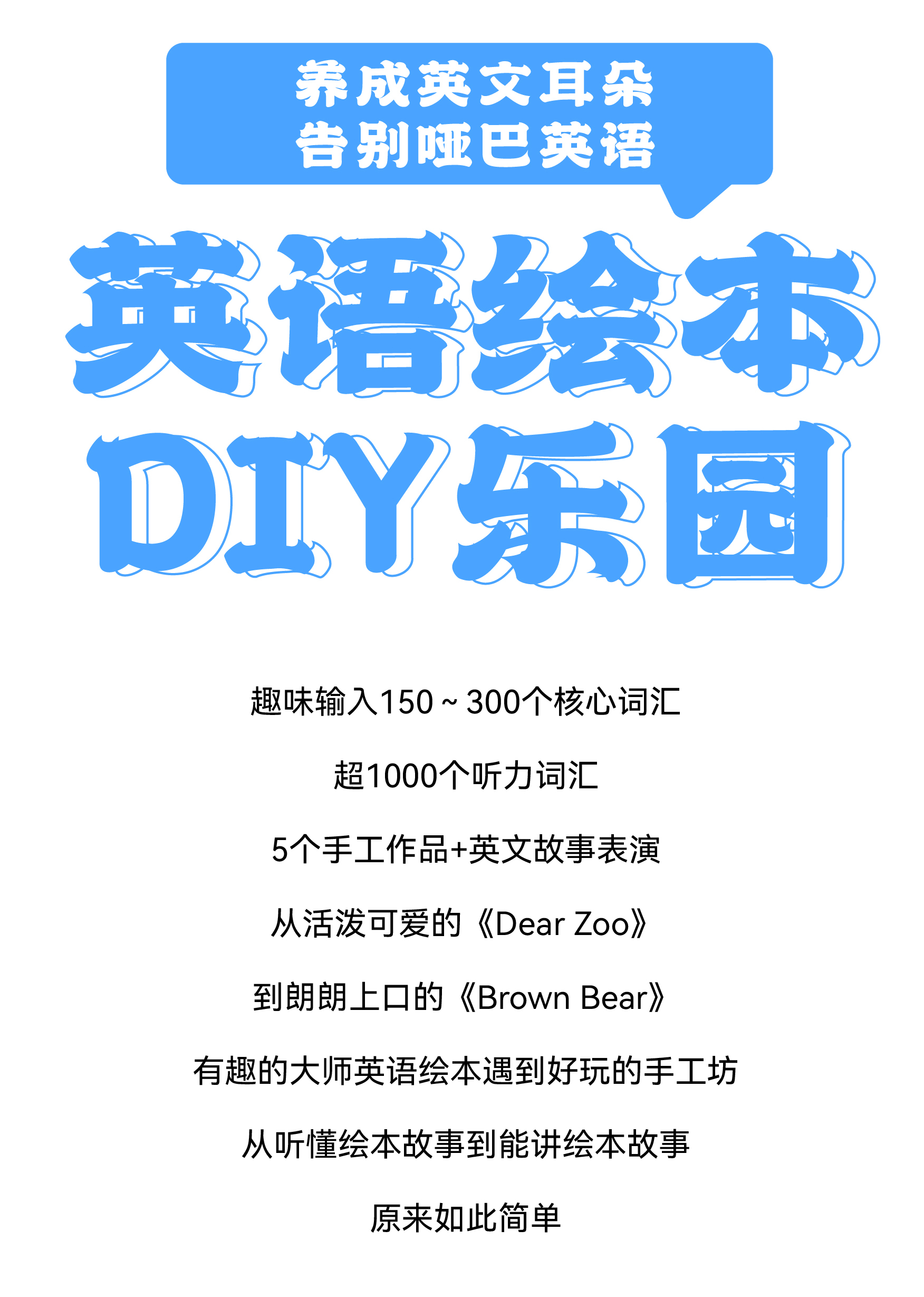 课程简介:《英语手工绘本》是一套针对4-10岁儿童的原版英文绘本共读课程,课堂选取经典的国际获奖原版绘本,通过四步:「绘本故事精读理解」、「原汁原味磨耳朵」、「创意手工」、「绘声绘色讲故事」培养孩子的阅读兴趣。