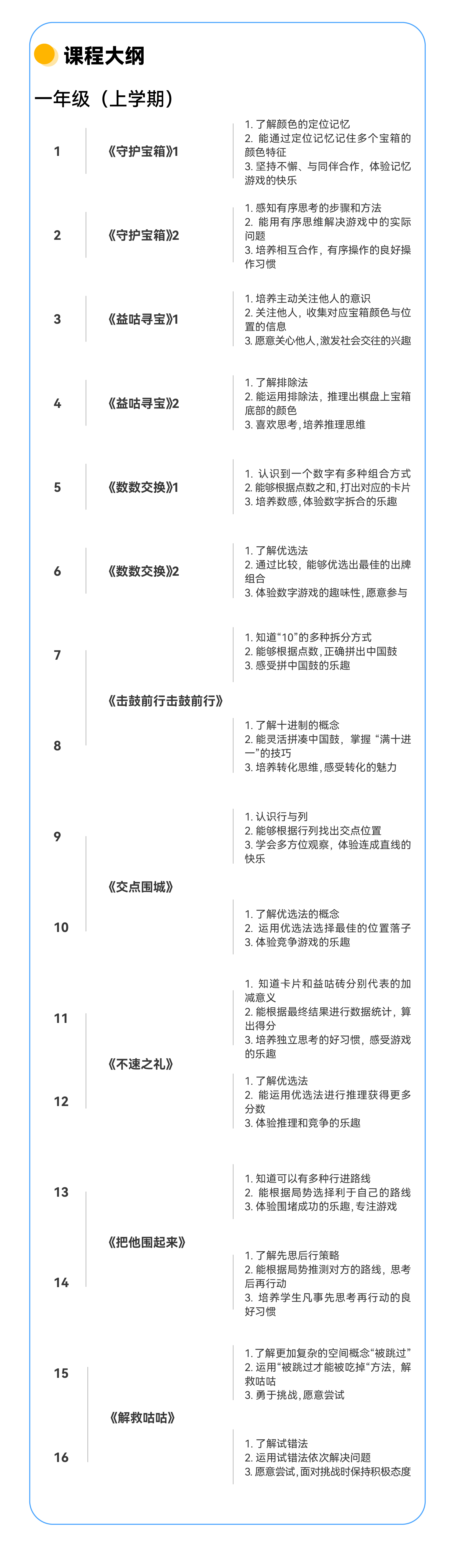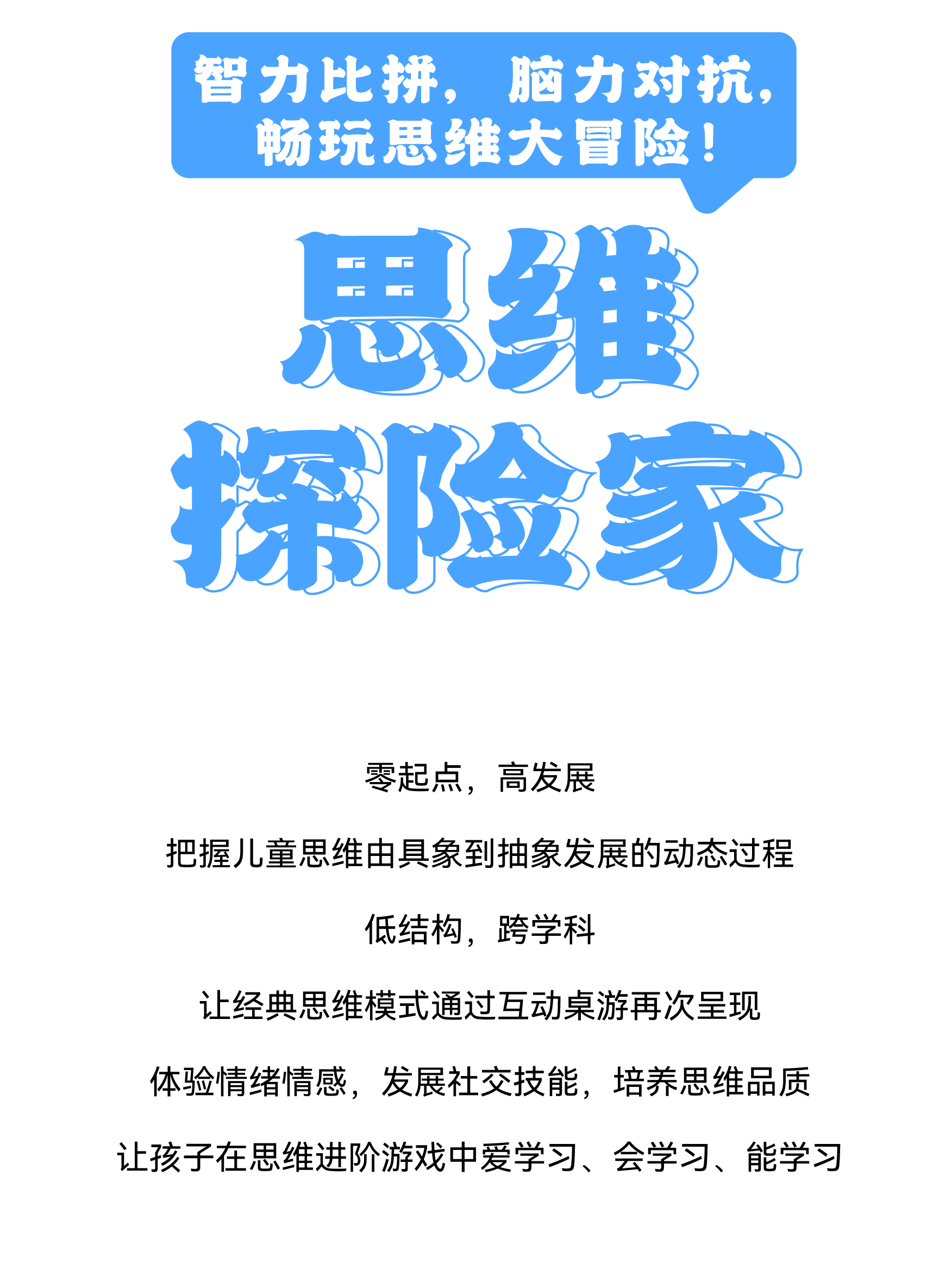 课程简介:“棋趣桌游”在“低结构、高发展”的设计理念下,以中华思维玩学具为导向,构建3-8岁儿童思维发展的支持体系。基于儿童思维发展路径,精选世界经典游戏,创编与儿童思维发展路径相匹配的游戏活动,创设多主体互动
