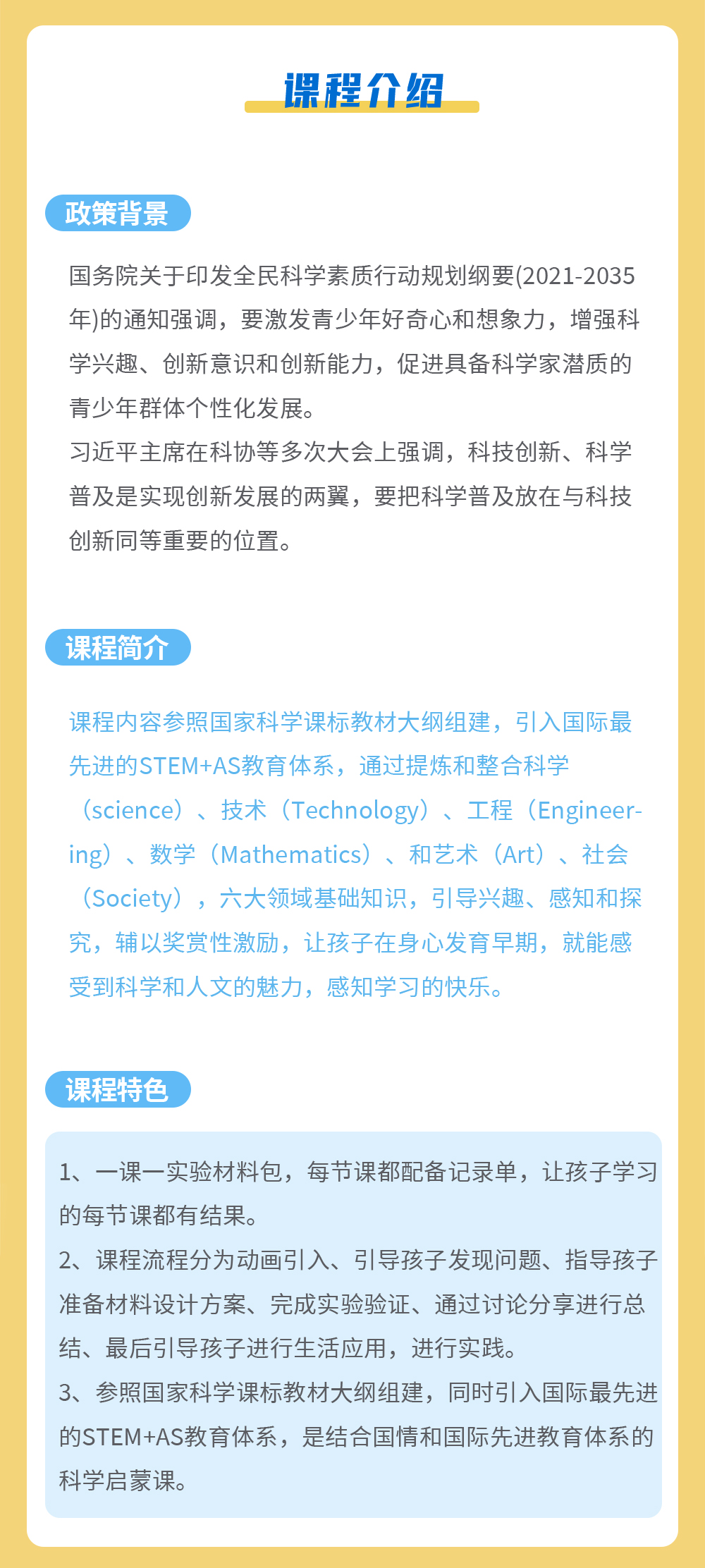 超300万孩子在学的Steam(科学、技术、工程、数学和艺术)课,帮助孩子感受到科学和人文的魅力,感知学习的快乐。
