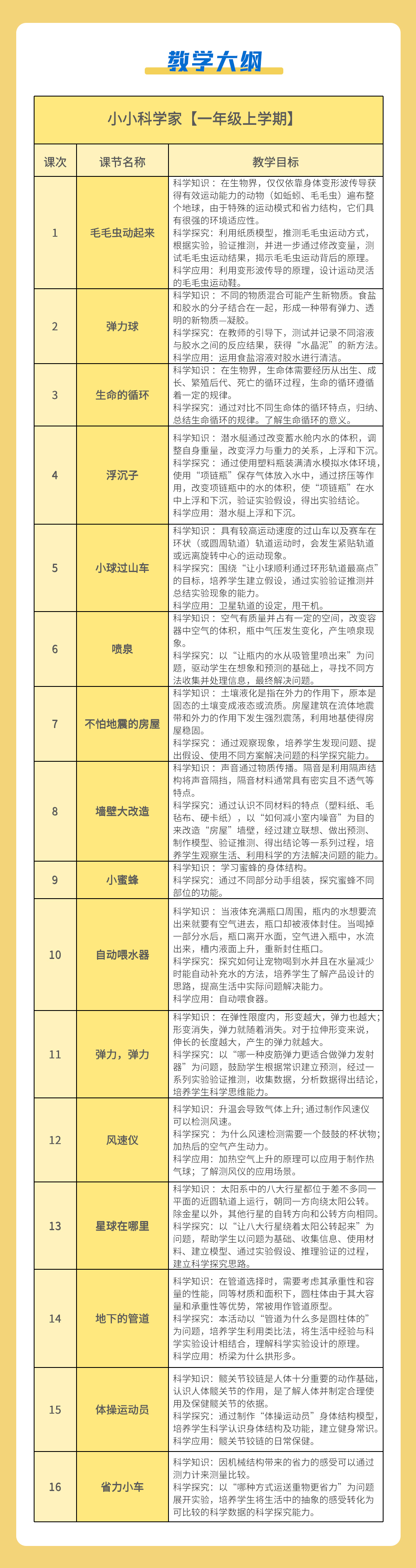 课程简介:课程依据教育部颁布的《小学科学课程标准》,参照国际先进的教育理念进行STEAM科学课程的设计,涵盖生命科学、地球科学、理学、工程技术4大领域,12个专业。