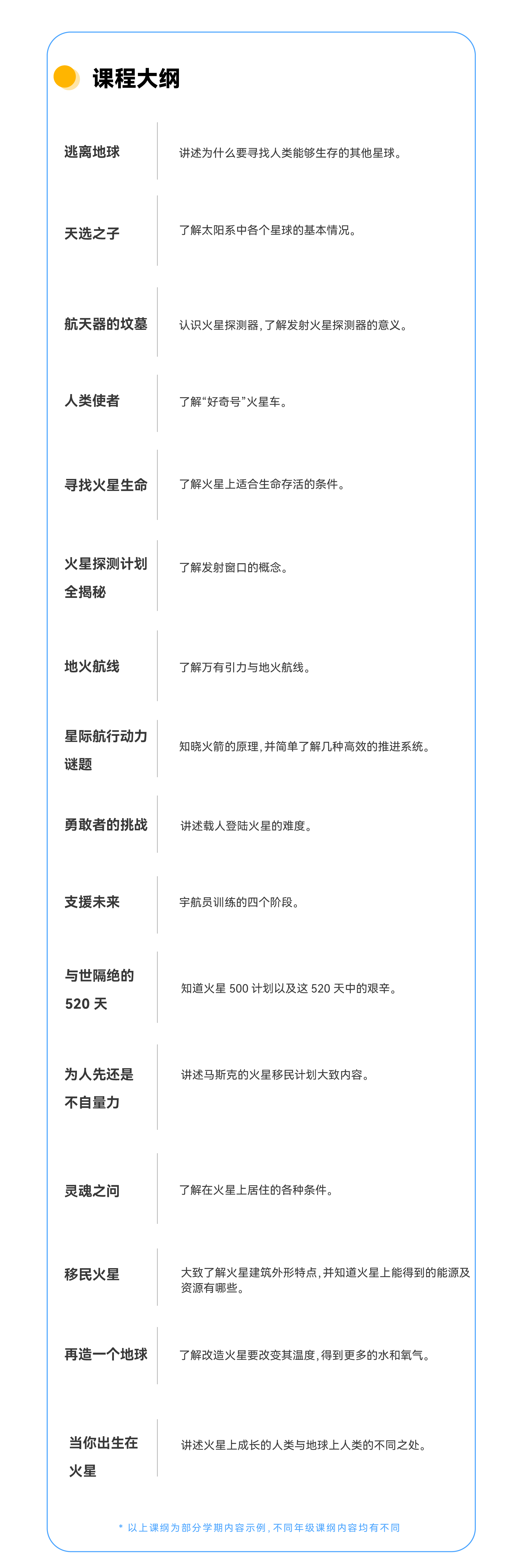 不仅是一次火星探索,更是一场跨学科的知识盛宴,将帮助孩子们在探索中学习,激发创造力,培养对科学的热爱。