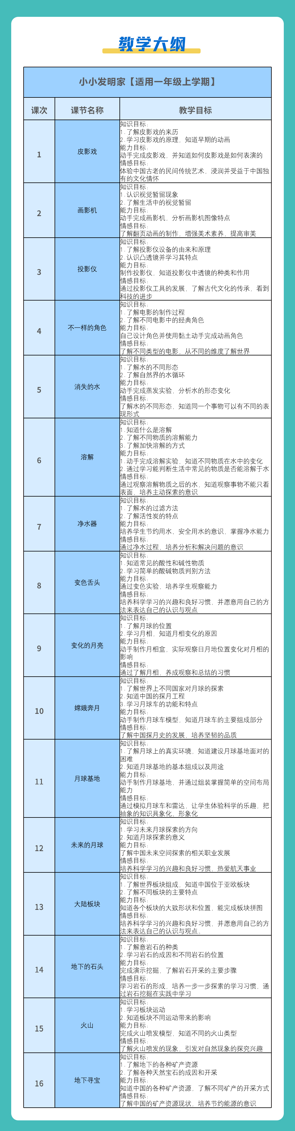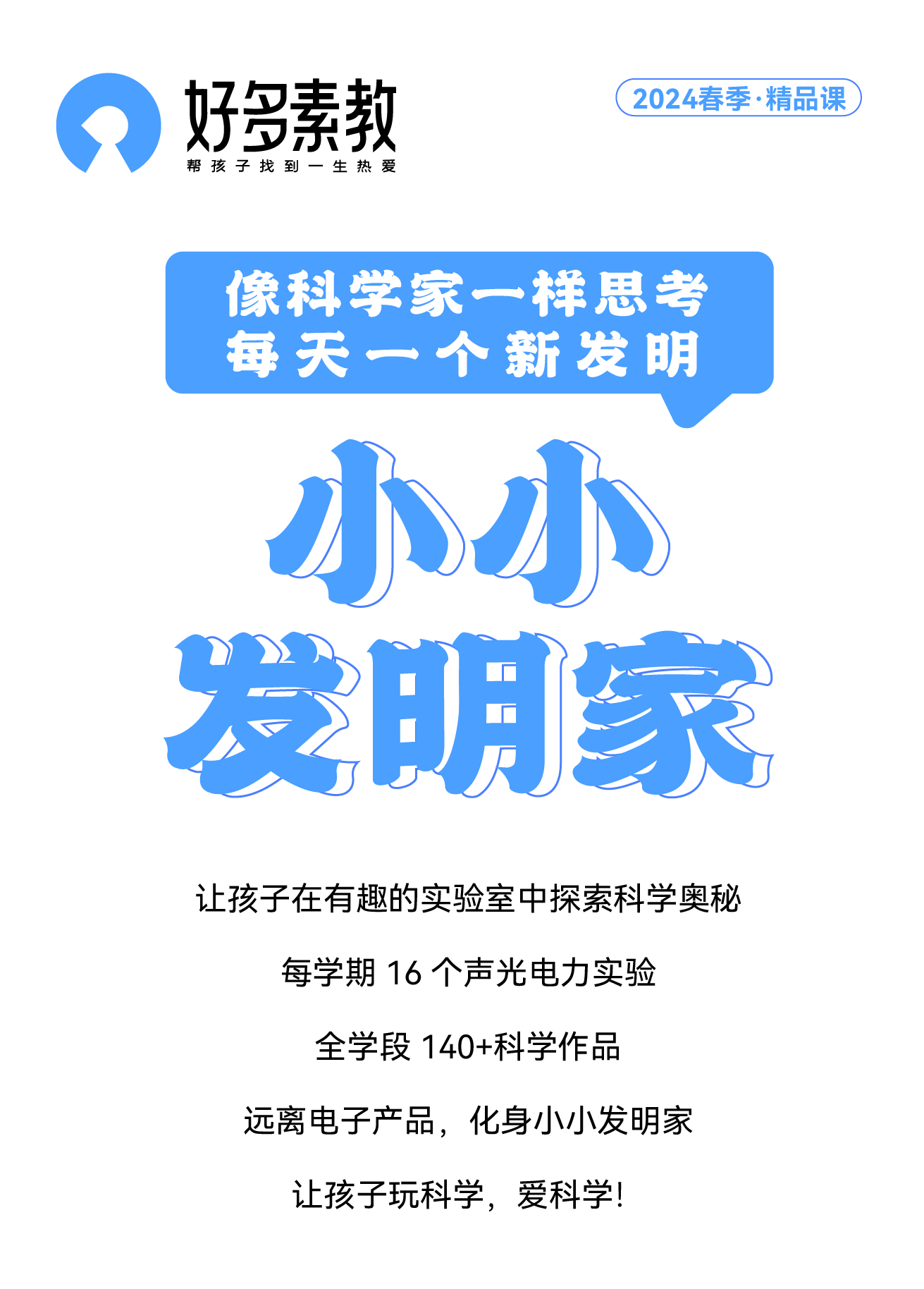 通过科学发明实验学习,帮助孩子做出自己的作品,提升科学素养,让孩子拥有探究、创新能力。