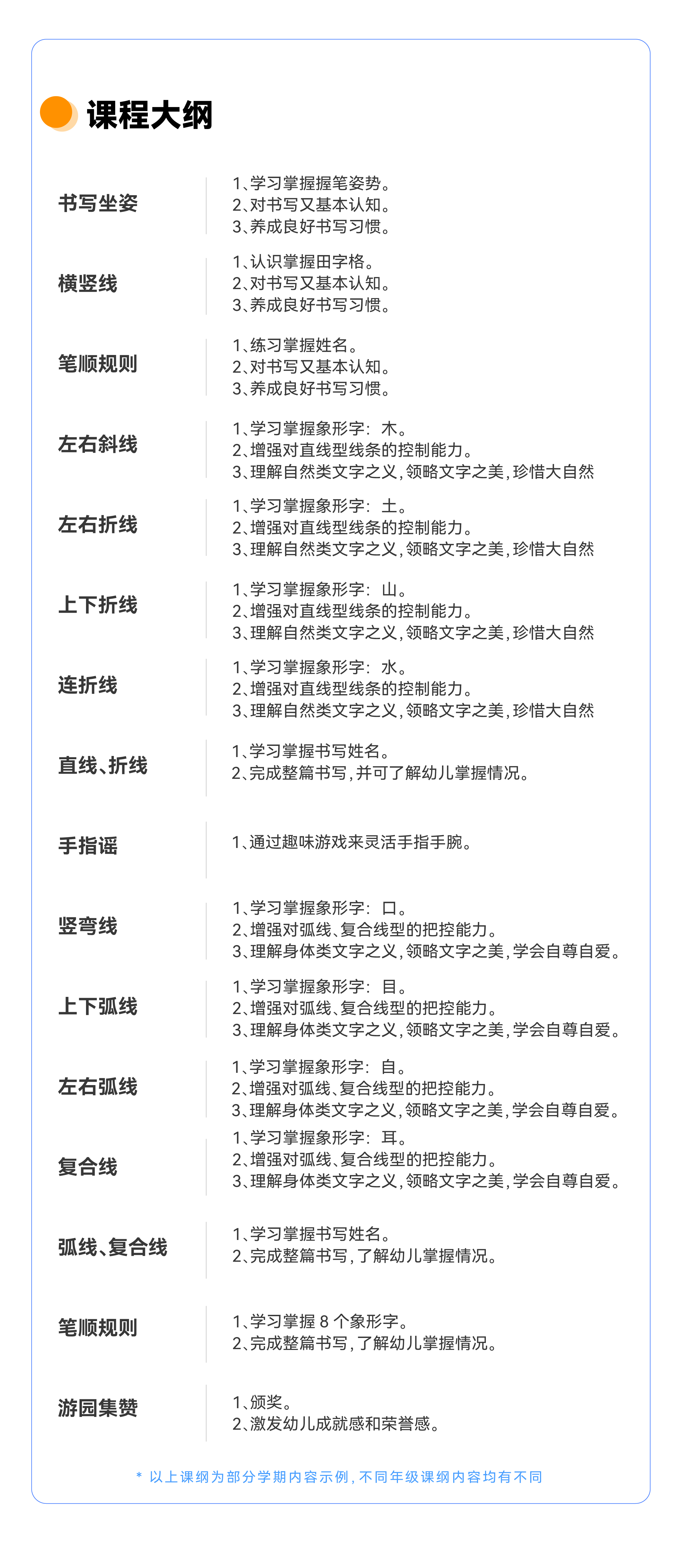 该课程通过其专业性、系统性和多样性的特色,为幼儿提供了一个全面发展的书法启蒙学习体验,有望激发孩子对书法和文化的兴趣,培养其审美自信,为未来的发展奠定坚实基础。