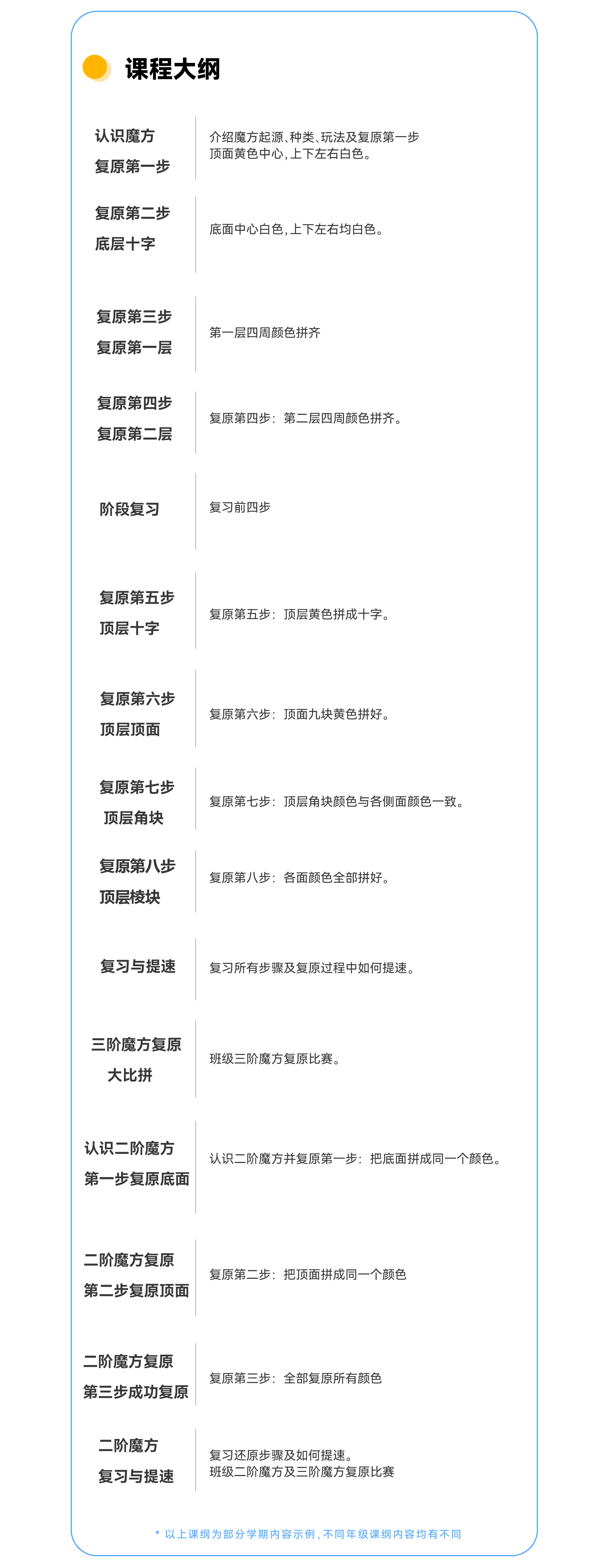 学生将不仅能够学到魔方的还原技巧,更能够在锻炼手眼脑协调能力的同时提升记忆力、毅力和耐力。这不仅有益于智力发展,还培养了学生的耐心和坚持不懈的品质,对于全面发展具有积极的促进作用。